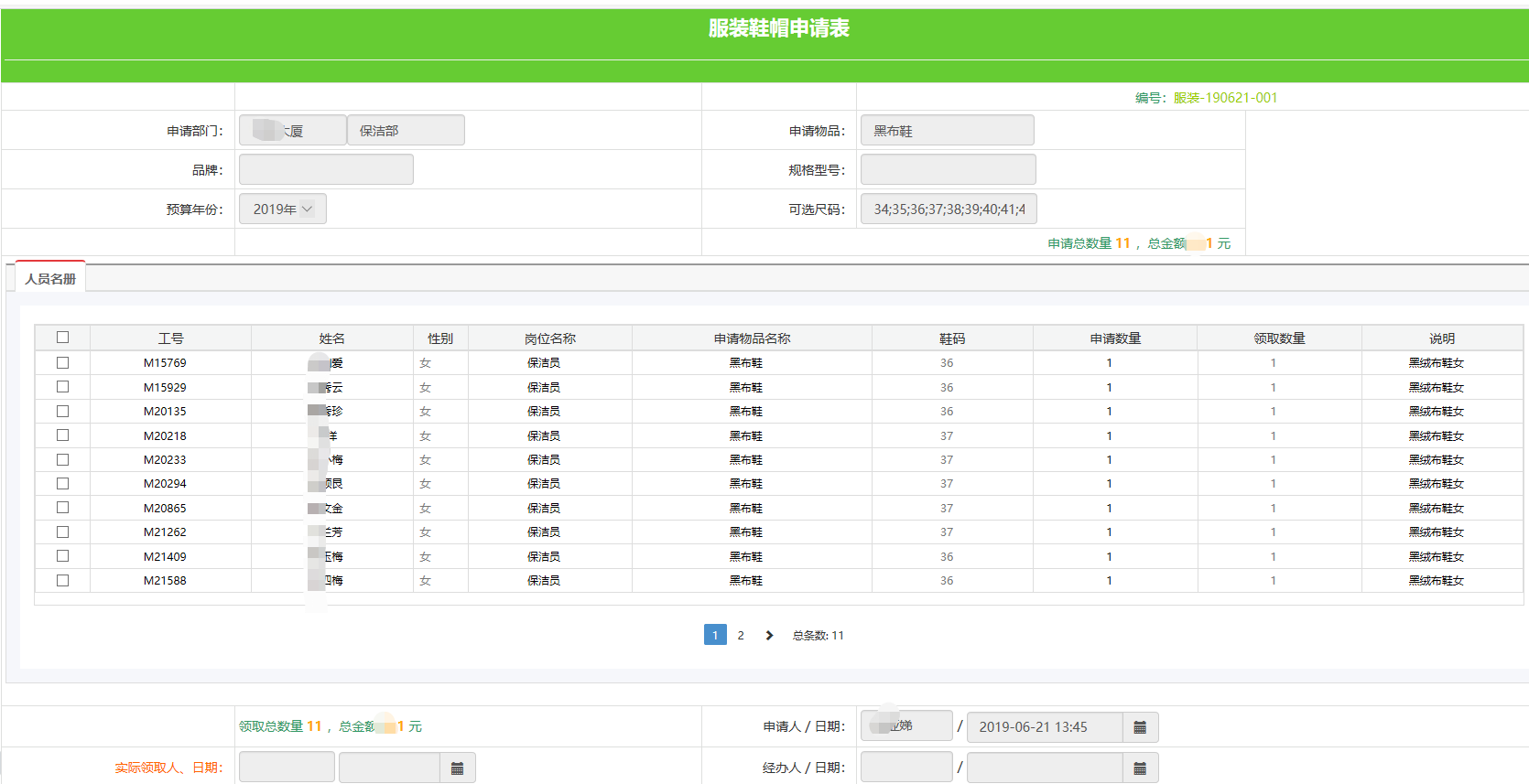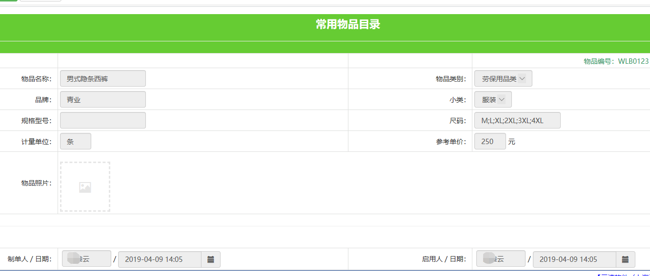 64.服装领用申请